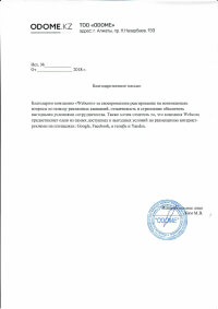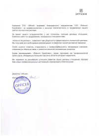 Компания ТOO «Office8» выражает благодарность специалистам Webcom за профессионализм и высокую компетентность в продвижении нашего сайта в контекстной рекламе. Будем рекомендовать «Webcom Kazakhstan» своим партнерам как профессионалов своего дела, обладающих большим опытом в области интернет маркетинга.